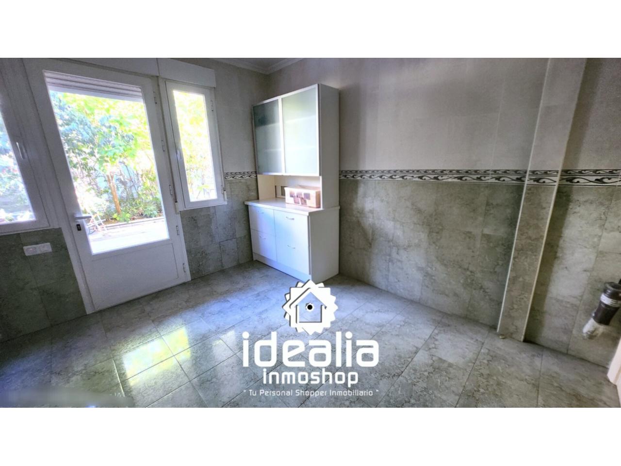 Planta principal: salón de 35 m² con salida directa al jardín, cocina independiente con acceso al exterior, un dormitorio y baño con ducha.